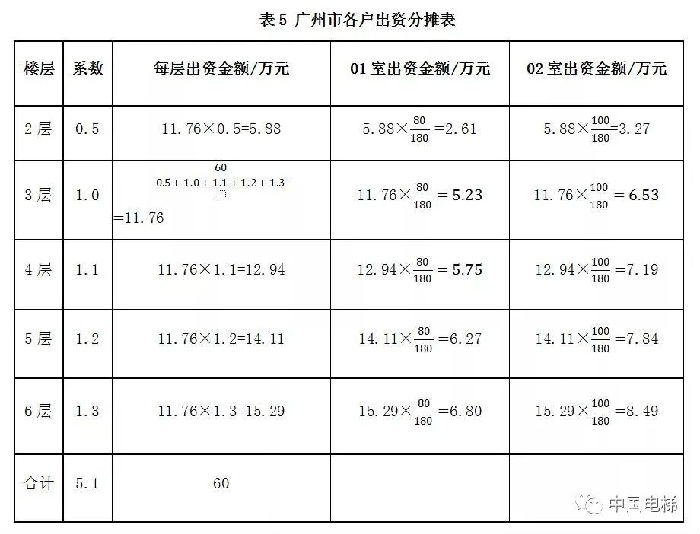 (2)《廣州市既有建筑加裝電梯辦法》(穗府辦規(guī)〔2016〕11號)規(guī)定,業(yè)主可以參考如下比例約定出資、維護(hù)和養(yǎng)護(hù)費用的分?jǐn)偅阂缘?層為參數(shù)1.0、第2層為0.5、第1層為0,從第4層開始每增加一個樓層提高0.1個系數(shù),即第4層1.1、第5層1.2、第6層1.3,并依此類推出資比例;同一樓層各戶的出資比例可以按照業(yè)主專有部分占該層建筑總面積的比例確定。